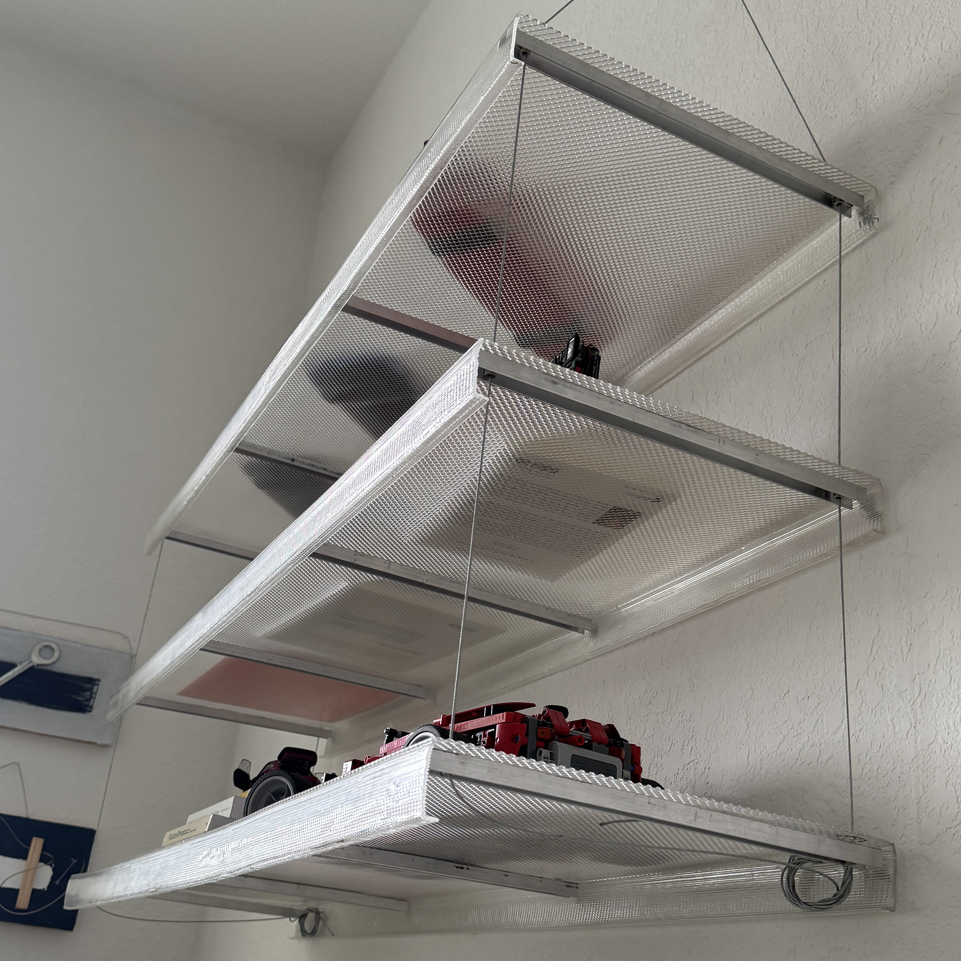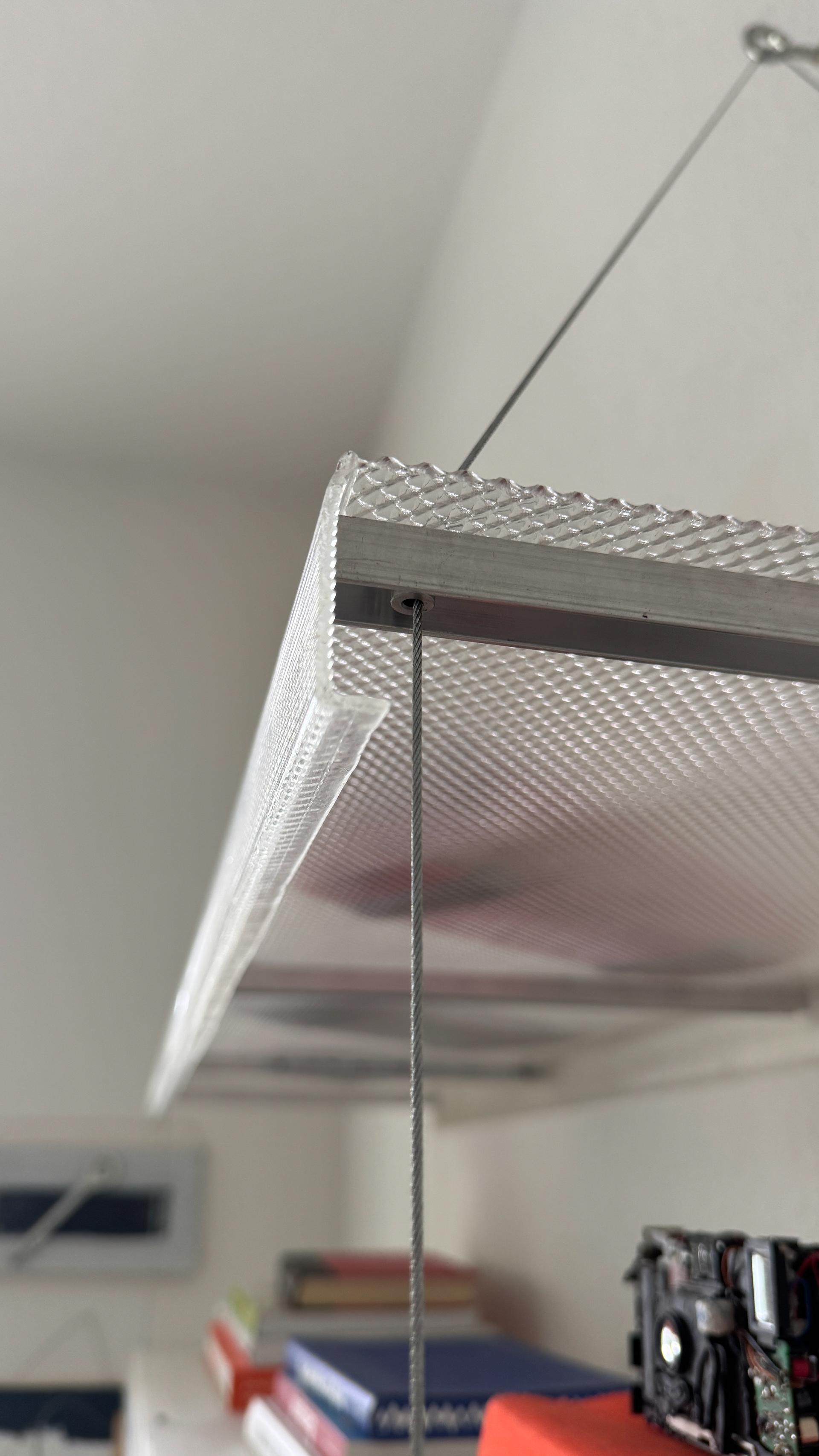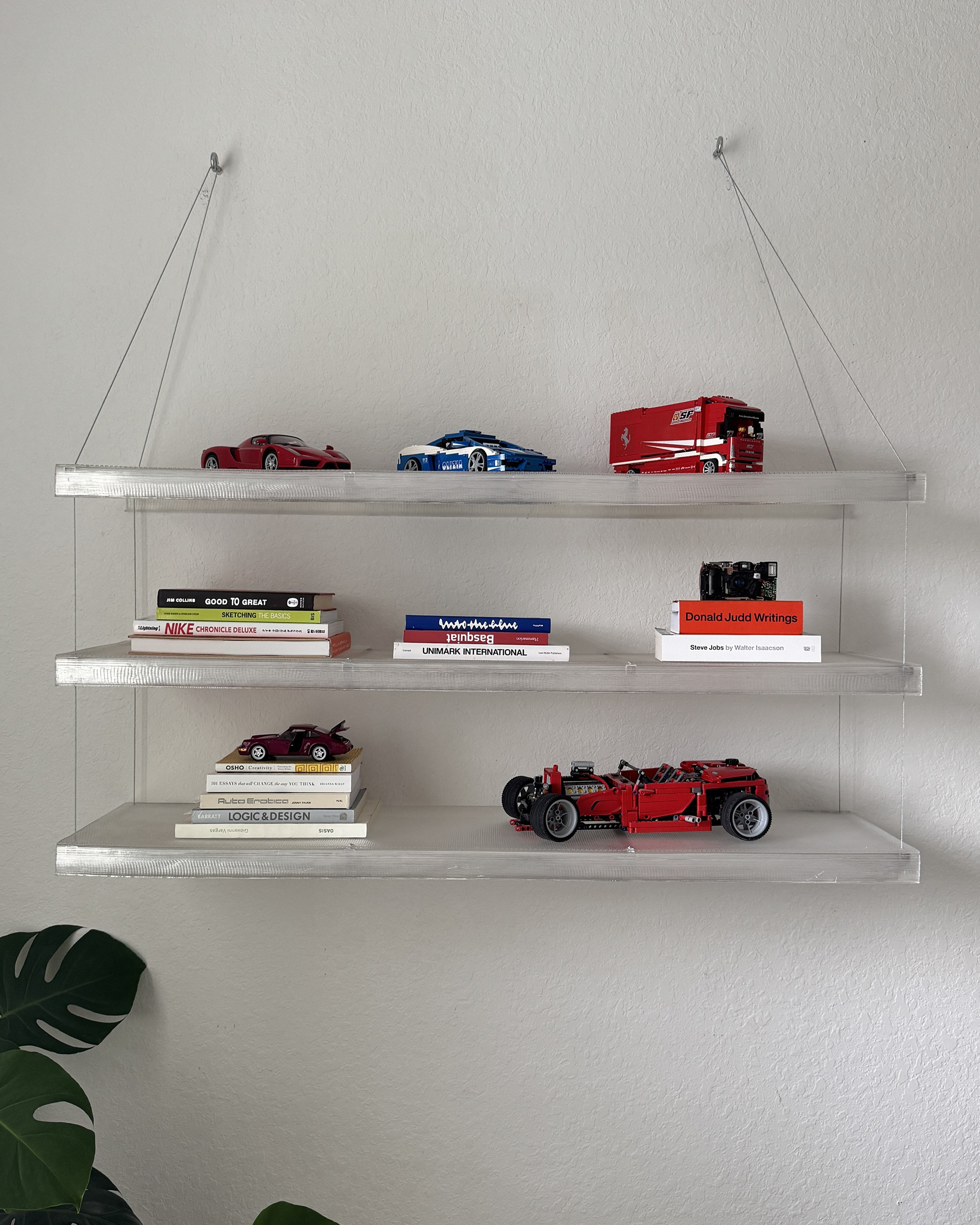 Polycarbonate, aluminum, and braided steel cable shelving | 2024
